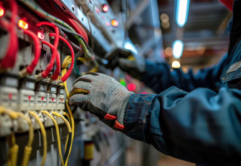 工場、ビル、施設の電力供給や制御、照明設備の設置・保守を行う重要な工事です。